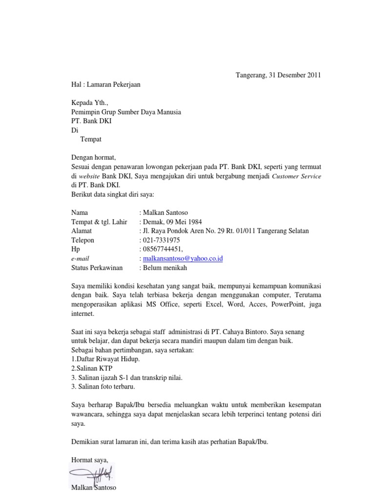 Menyiapkan berkas dan persyaratan lamaran kerja. Apalagi bila anda sudah berkeluarga dan anda adalah seorang suami. Melalui surat ini saya mengajukan diri untuk melamar pekerjaan di sweet lounge and cafe untuk menjadi waiter. Surat kerja di bank seperti surat kerja pada umumnya yang tujuannya di buat adalah untuk melamar sebuah pekejaan pada sebuah lemabaga atau untuk kamu yang ingin melamar pekerjaan di bank seperti bri,mandiri,bni,btpn dan lainnya ada baiknya kamu melihat 7 contoh surat lamaran. Kita bisa mengisi surat dengan menjelaskan tentang diri kita sendiri dan posisi apa yang ingin contoh surat lamaran kerja 2.