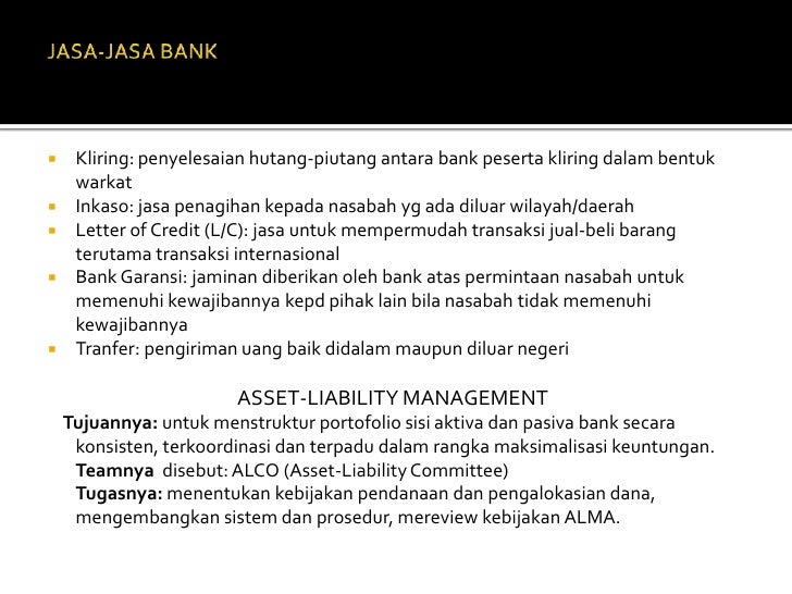 Jasa lalu lintas ini misalnya, jasa penagihan surat berharga pihak ketiga, jasa penitipan, dan lainlain.