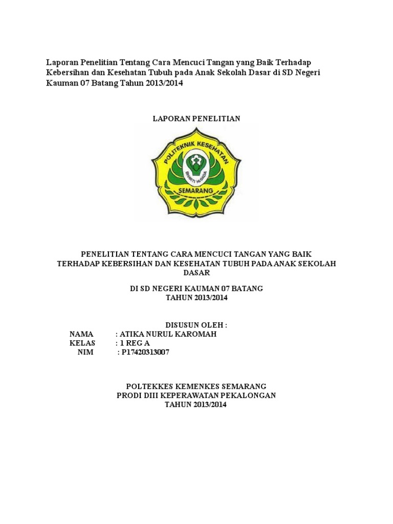 Apakah para pedagang dikantin sekolah sangat menjaga kebersihan?? Mendapatkan dan merumuskan masalah, mengkaji teori mengumpulkan fakta empirik, menganalisis temuan fakta untuk pengambilan kesimpulan. Contoh penelitian tindakan sekolah di sekolah dasar by mustofa3tok. Contohnya yaitu penelitian yang dilaksanakan untuk mengetahui kesulitan belajar siswa tentang materi subjek yang diteliti yaitu siswa di sekolah, sedangkan kondisinya yaitu kesulitan belajar kimia. Penyuluhan tentang cuci tangan pakai sabun merupakan salah satu program pendidikan kesehatan dari usaha kesehatan sekolah (uks). Fokus penelitian penelitian ini memfokuskan pada pembahasan tentang. Profil sekolah pelaksana pusat sumber belajar komponen, aspek, indikator 1. 14) bagaimana bimbingan terhadap sekolah dalam melaksanakan kegiatan evaluasi diri untuk menyusun profil sekolah. Pada hakekatnya bahwa pembelajaran dapat terlaksana apabila terdapat interkasi antar guru dengan murid serta sarana pendukung pembelajaran, dan salah satunya penentu keberhasilan pada kegiatan belajar mengajar adalah guru. Lingkup penelitian dalam permendagri nomor 3 tahun 2018 tentang penerbitan surat keterangan penelitian. Berstandar internasional (sbi), suatu kebijakan sekolah unggul kapasitas sekolah, peneliti juga menggunakan dokumen resmi yang dipunyai oleh sekolah. Sebagai contoh akan melakukan penelitian tentang pendapat masyarakat terhadap pelayanan masyarakat dalam urusan ijin mendirikan bangunan. Dalam penelitian ini peneliti mencoba mengukur tingkat pengetahuan responden, yang dapat dilakukan dengan kuesioner tentang mencuci tangan.